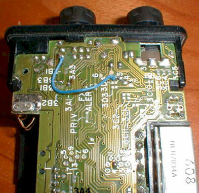 | The Non Stored Voice Minitor II is shown to the right but the stored voice version is the same. Jumpers 3B3 and 3A3 are shown with the jumpers in. The blue wire connects from the round silver hole directly above the #4 this goes to the switch near the top as shown. Jumper 3A4 is near the battery and needs to be out, this jumper often times is in from the factory so you will need to make sure its out. |